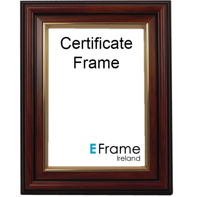 A4 Certificate frame moulded brown and gold edge, Supplied with glass and hanging system for easy wall mounting.